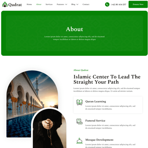 Qudrat – Islamic Center & Mosque Elementor Template Kit is a premium WordPress theme designed for Islamic centers, mosques, and other organizations related to Islam. The theme features a modern and elegant design with a focus on Islamic culture and tradition.