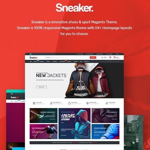 The sneaker is a Magento theme that is entirely current, aesthetically polished, and functionally resourceful. It’s a fully responsive and Retina-ready e-commerce theme for fitness, Crossfit, personal training, coaching, athletic, fitness center, gym, and sport store websites.